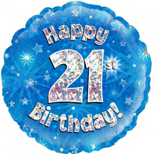 18 Inch Blue Holographic 21st Birthday Foil Balloon